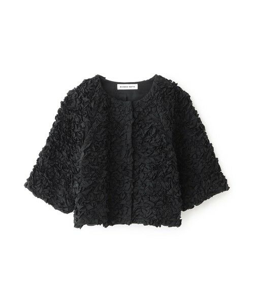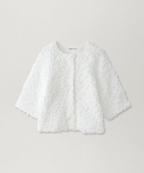 コットンローンをカットして刺繍した、オリジナル素材のノーカラージャケット。