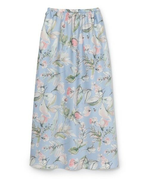やさしいカラーで構成された、上品な印象の多配色ボタニカルプリントスカート。