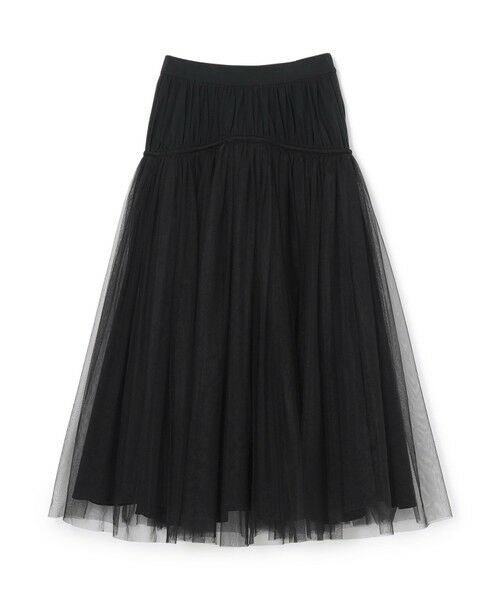 異素材の美しいコントラストが際立つレイヤードスカート。