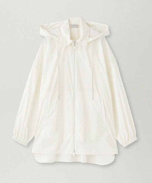 ナイロン素材を使用し、穏やかな季節のアウターウェアとして着られるフード付きデザインです。