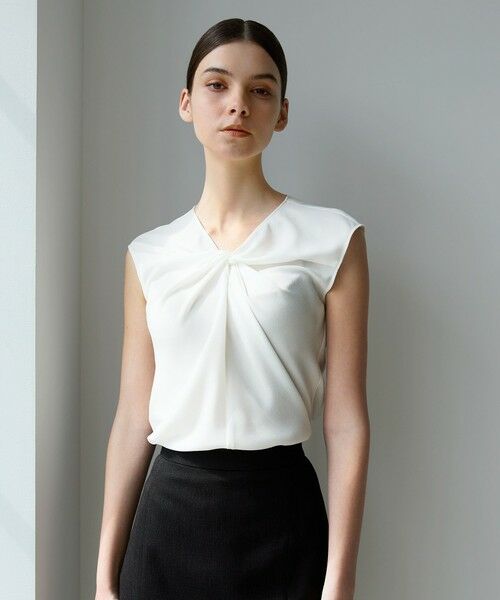 胸元のツイストデザインと美しいドレープが特徴のブラウスです。