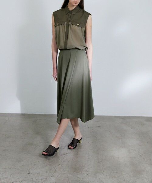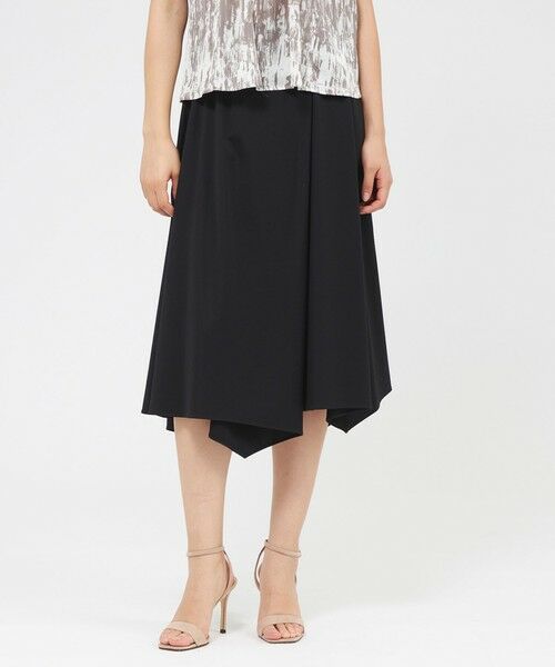 アシンメトリーデザインのラップ風フレアスカートです。素材の落ち感を活かした動きのあるヘムとフレアー分量で美しいシルエットに仕上がっています。リラクシーなジャージー素材でありながらも綺麗めに合わせていただけるデザインがポイントです。同素材のプルオーバー(品番:M5P13576)や同展開のシアーコンビクロップドシャツ(品番:M5M33577)とセットアップで着用いただくのがおすすめです。