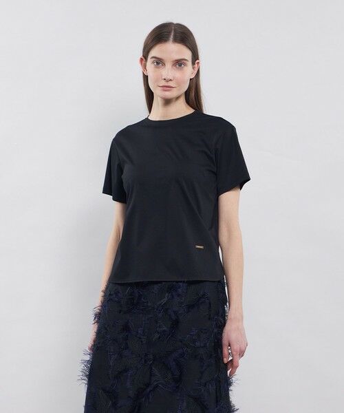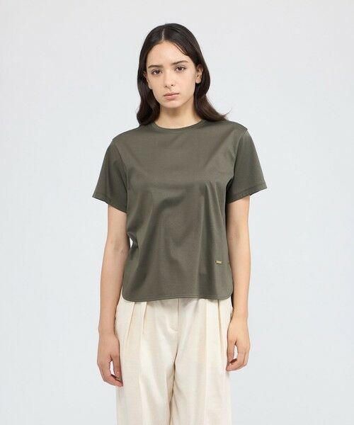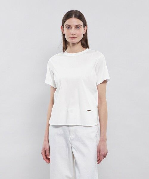 インナー使いに活躍するシンプルな半袖Tシャツです。シンプルながらもシルエットにこだわり、ラインを拾わない程よいゆるさ、シャツテールのような前後差のあるラウンドカットをポイントにしました。コーディネートに抜け感を出したいときに使える便利な1枚です。裾にはポイントでEPOCAオリジナルメタルプレートをプラスしました。