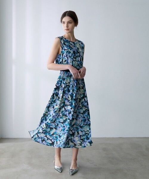 【素材】ローズとポピーをモチーフにした涼しげなフィオーレプリント素材です。下地にはポリエステルの強撚スムースジャージーを使用し、涼しく軽やかでイージーケアも可能な素材に仕上げています。サラッとしたタッチ、綺麗な落ち感が特徴の素材です。【デザイン】華やかなフィオーレプリントが主役のサマードレスです。ウエスト部分は無地のニットパーツでアクセントを効かせ、シルエットにもコントラストをつけました。ノースリーブの肩にはタックを効かせて立体感のあるシルエットに。スカート部分はジャージー素材特有のドレープ感があり、上品な印象です。ご自宅で手洗い可能です。洗濯表示に従ってお手入れしてください。透け感:なし伸縮性:あり生地の厚さ:普通おすすめ着用期間:春、夏※この商品はサンプルでの撮影を行っています。実際の商品とイメージ、仕様が異なる場合がございます。