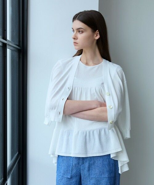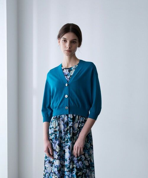 汎用性の高いショート丈カーディガンです。強撚の綿素材を使用し、涼しく肌離れの良い着心地に仕上げました。天然素材ならではの質感を感じられる1着です。ドレスの羽織としておすすめのアイテムです。同素材のプルオーバー(品番:M5N46604)の展開もございます。