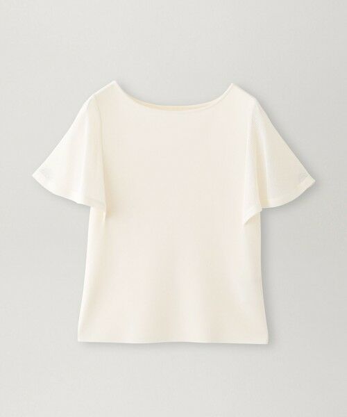 袖のみメッシュのデザイン、身頃にメッシュのケープを重ねたデザイン、と2パターンの着回しを楽しんでいただけます。着回しがきくように身頃のシルエットはシンプルにリブ編みで仕上げました。