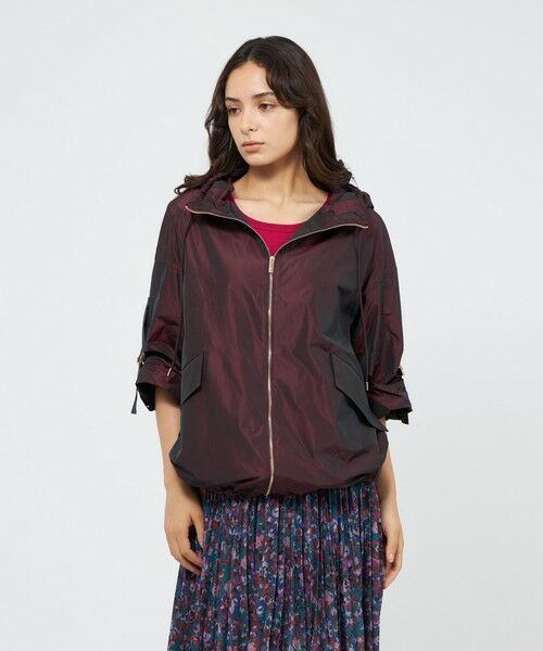 【ブルゾン】イタリアLIMONTA社の軽量ポリエステルメモリータフタです。厚すぎない程よい肉感、シャンブレーによる光沢や色の深みが非常に上品な素材です。【スカート】水彩の濃淡やにじみを活かした小花柄です。アニマル柄のようにもドット柄のようにも見える、遊び心のある表情が魅力です。
