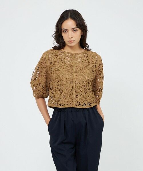ボリュームのある袖が華やかさを演出するニットカーディガンです。前後どちらでも着用できる2WAYデザインで、気分によって自由な着こなしが叶います。軽やかな印象のショート丈は、パンツ合わせにもスカート合わせにも活躍します。インナー付きのため前を閉めてブラウス感覚で着用いただくのもおすすめです。
