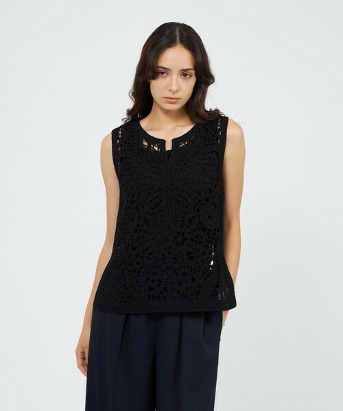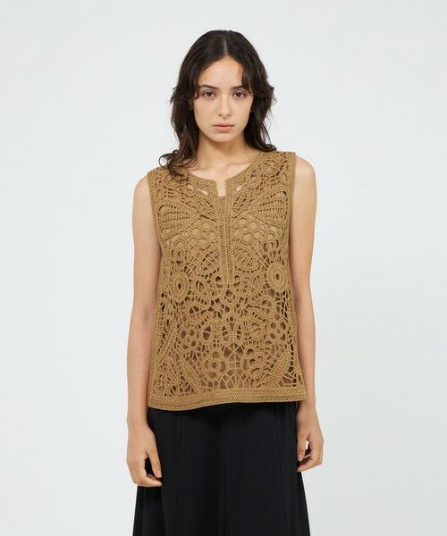 華やかな刺繍が目を引く、存在感のあるニットジレです。ニットの糸を太くし柄を大きくすることで、印象的で華やかな印象に仕上げています。インナー付きのため1枚で着用できるのも嬉しいポイントです。