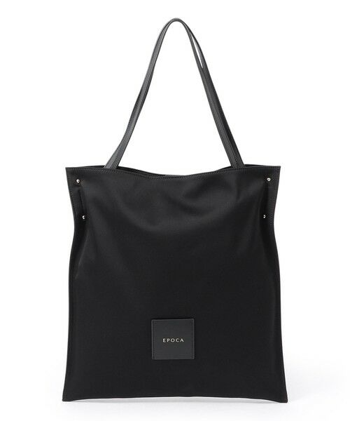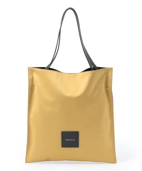 2種類の素材を組み合わせた、、フラット仕立てのシンプルなライトトート。前面には光沢感のあるエレガントなサテン素材を使用し、ロゴ入りのレザーパッチがワンポイントに。背面はレザーで切り替え、上品でシックな印象に仕上げています。肩にかけると、フォルムがやわらかく変化し、こなれた印象に。メインバッグとしてはもちろん、サブバッグとしても活躍する、軽さと程よいデザイン性がポイントです。内側にはオープンポケットを1つ備え、口元にはマグネットクロージャーが付いています。