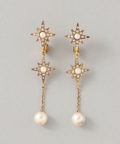 耳元で揺れるスターモチーフにパールがアクセントとなる華やかなデザインです。