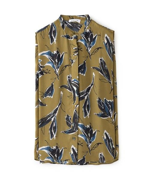 秋を感じさせる深みのある色合いが魅力のSACRAオリジナルプリントのバンドカラートップ。