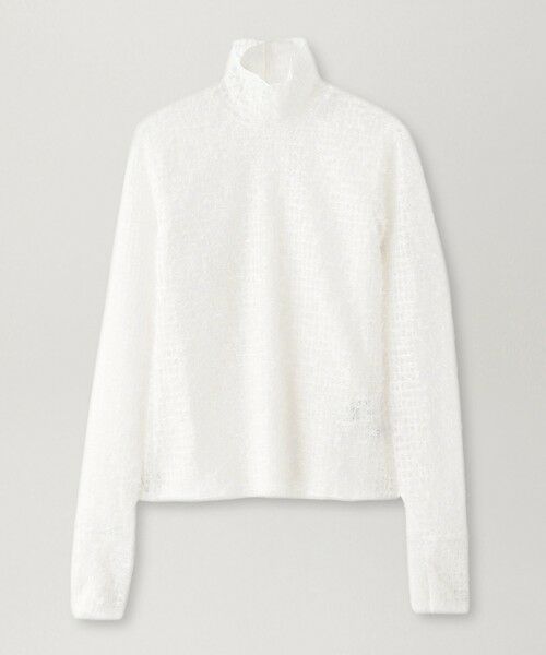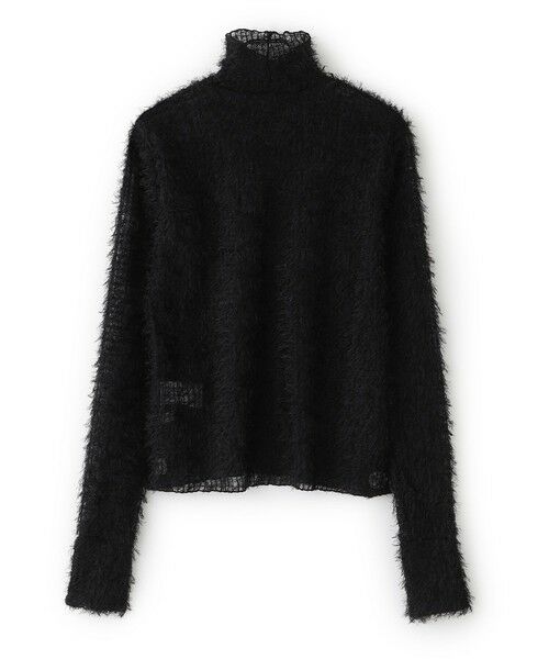 毛羽感とシアー感のコンビネーションが新しいファーチュールを使用した、ハイネックトップス。