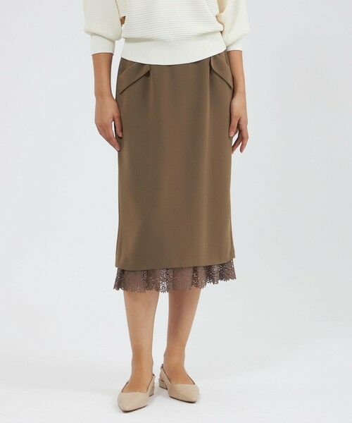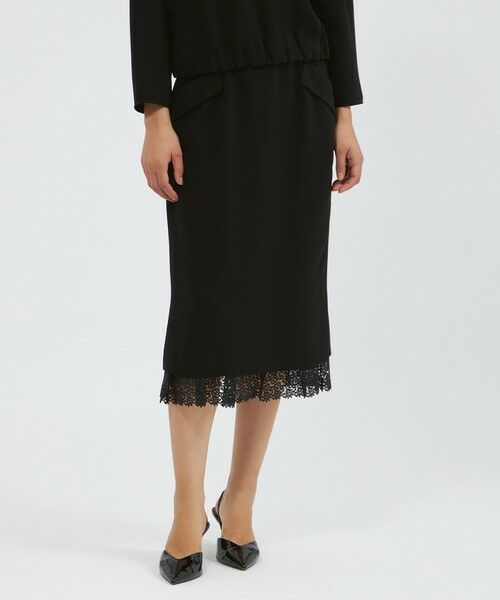 ケミカルレースをレイヤードしたセミタイトスカートです。程よくフレア感を持たせることで動きにエレガントなニュアンスを加えています。フラップのディテールがデザインのアクセントに。ウエストは前面をすっきりと仕上げ、後ろにゴムを入れることで快適な着用感と美しいシルエットを叶えました。同素材のブラウス(品番:M5M27628)とのセットアップもおすすめです。