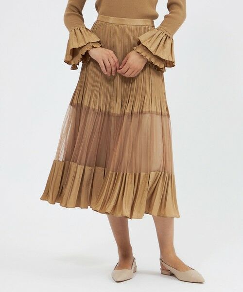 タフタとチュールを組み合わせた、華やかさと軽やかさを併せ持つプリーツスカートです。