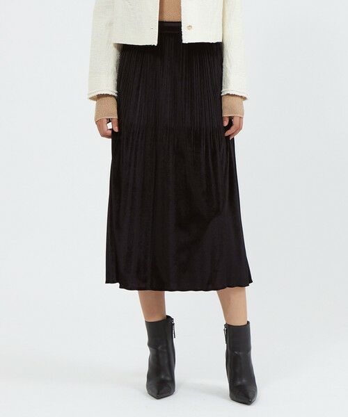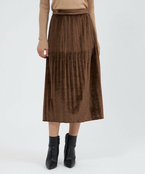 ウエストからヒップにかけてプリーツ加工を施したベロアスカートです。控えめな分量感でありながら、毛足のあるベロア素材にプリーツをかけることで上品で新鮮な印象に仕上がっています。深みのある色合いが季節感を引き立てる1着です。