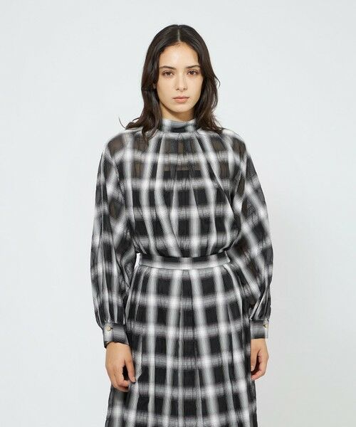 オンブレーチェックのシアー素材。ストレッチ糸を使用して表面に立体感を出しています。