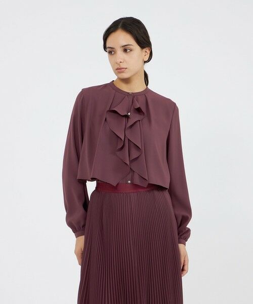 ジャケットと合わせても、1枚で着ても華やかに映える1着です。同素材のスカート(品番:M5S34643)とのセットアップもおすすめです。