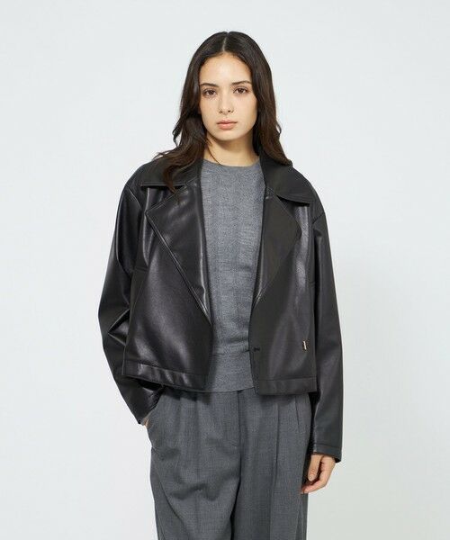 【素材】1970年代、イタリアのプラトー地区にて立ち上げられたイミテーションレザーの先駆者であるLEATHERTEX社がプロデュースした素材です。基布にはリサイクルポリエステル100%を使用しており、環境への配慮もされています。合成皮革の中でも、圧倒的な滑らかさと上品な艶感、薄く軽やかな質感が特徴です。伸縮性にも優れており、着心地も快適です。【デザイン】大きめの襟が印象的な、シンセティックレザー素材のジャケットです。ややゆとりのあるシルエットが雰囲気のある着こなしへと昇華させてくれます。カーディガン感覚で使える軽やかな着用感、厚手のインナーの上からも羽織やすく、気温に合わせた着回しにぴったりの一着ライトアウターです。透け感:なし伸縮性:あり生地の厚さ:普通おすすめ着用期間:春、秋※この商品はサンプルでの撮影を行っています。実際の商品とイメージ、仕様が異なる場合がございます。
