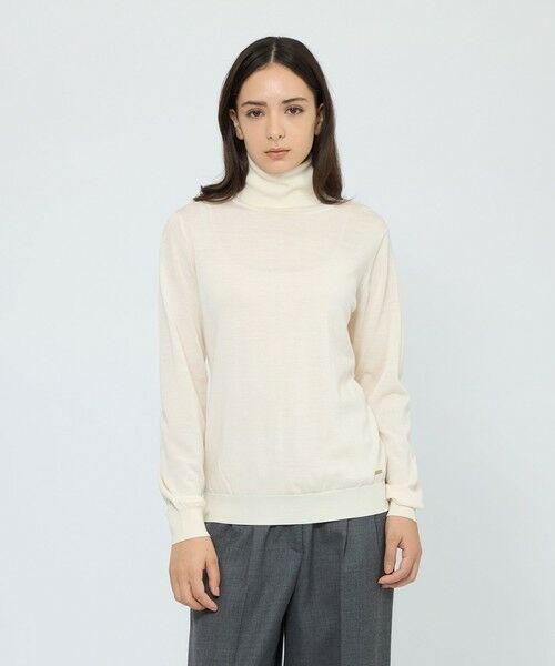 目面の綺麗な16ゲージ天竺のタートルニットプルオーバーです。何にでも合わせられて着回しがしやすいよう、スタンダードなデザインとサイズ感に仕上げました。裾のリブ上にあしらったEPOCAプレートでさりげないワンポイントを効かせています。
