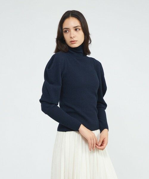 :袖のボリューム感がポイントのリブニットプルオーバー。身頃はリブ編みですっきりと細見えするシルエットです。肩先がドレープの様に落ちる袖はボリュームがありながらも、リブとのコントラストがエレガントな華やかさを演出します。同シリーズのスカート(品番:M5S43666)や、ケープ(品番:M5N54666)と合わせて着用いただけます。