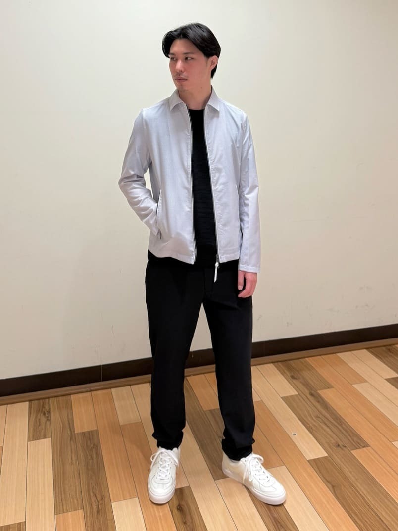エポカウォモでも定番の人気素材クールドッツを使用したブルゾンのコーディネートです。高機能素材のクールドッツを使用しており、メッシュ組織で通気性に優れながら2WAYストレッチなので着心地に優れた仕上がりになっています。ご家庭で洗濯できるイージーケア性も魅力です。【モデル身長:177cm】
