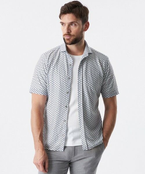 メッシュ素材にオリジナルのジオメトリック柄プリントをのせたカジュアルシャツです。シンプルなシルエットのシャツは様々なコーディネートに取り入れやすいマルチアイテム