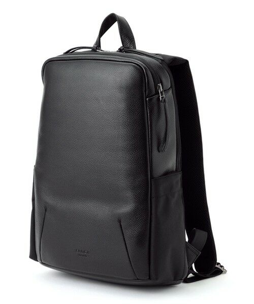 収納しやすい四角い形のバックパック。アクセスしやすい本体上部のポケットはスピーディーな収納、取り出しが行えて便利。両脇のポケットは折りたたまれたマチを開く事で500mlペットボトルを収納可能で内装にはPCポケットと小物用のポケットを装備。2つのポケットは中身の見えるメッシュ地を採用し、細かな物も一目で見つけられます。背面にはスーツケース等のハンドルに通す事でキャリーオンが可能なエラスティックバンドも装備。