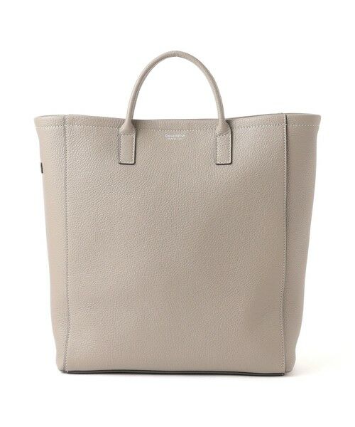 カラー展開とハンドルを丸い持ち手に変更して別注。シボ革にマイクロファイバーを貼り合わせたダブルフェース素材で構築的なモデルを際立たせる。