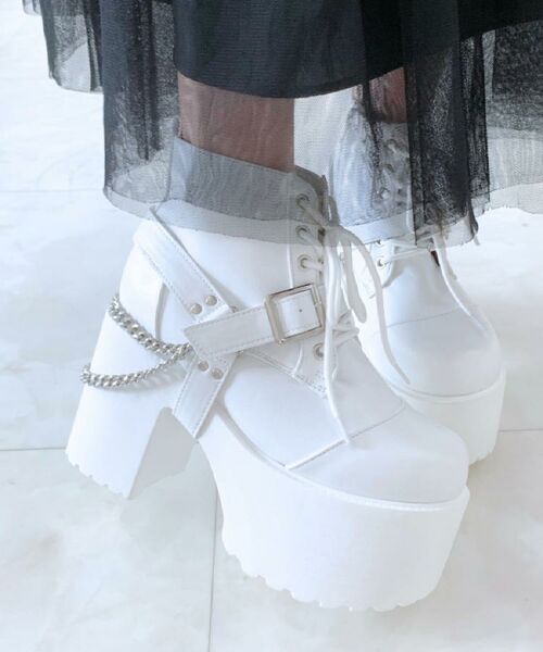 S(22.0cm-22.5cm):ヒール高10cm 幅8.7cm プラットフォーム6.5cm 筒周り20.5cm 筒丈11cm 重量片足約600g