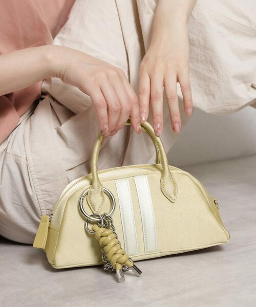 カジュアルながらもサテン生地を使用し垢抜けした雰囲気のミニボストンバッグ。