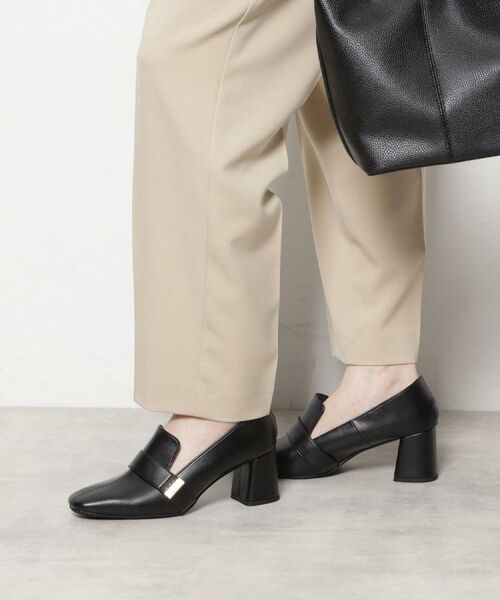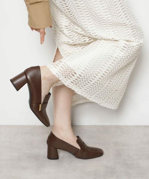アッパーのベルトにワンポイントのゴールドの金具が付いており、スクエアトゥが落ち着いた印象を与えるデザインローファー。