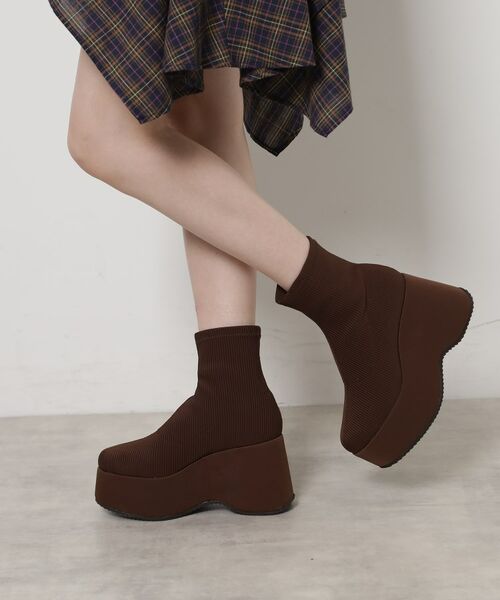 スタイルぐんっとアップ!厚底ニットショートブーツ