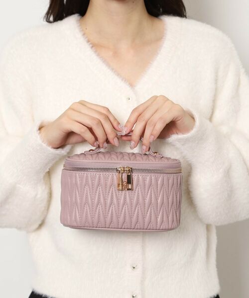 キルトデザインが上品で可愛く、内側フラップ側にはブラシやアイライナーなどの収納に便利な細めポケット付き。