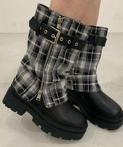 S(22.0cm-22.5cm):ヒール高6.5cm 幅10.1cm ブーツ筒周り31.5cm ブーツ筒丈22cm プラットフォーム4cm 重量:01(22.0~22.5cm)片足約555g