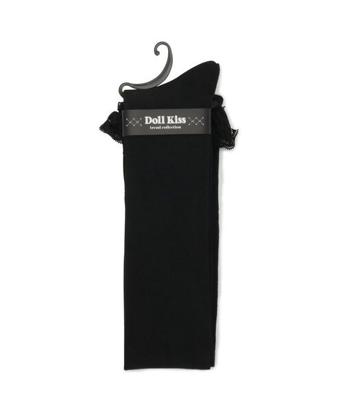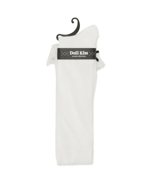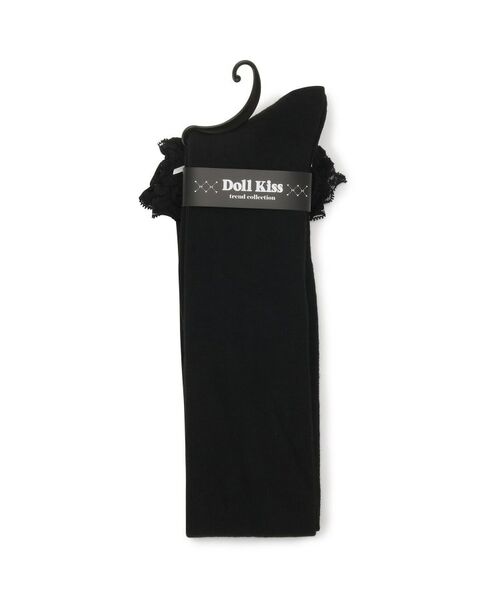 レースが2段×サテンリボンが付いたニーハイソックス
