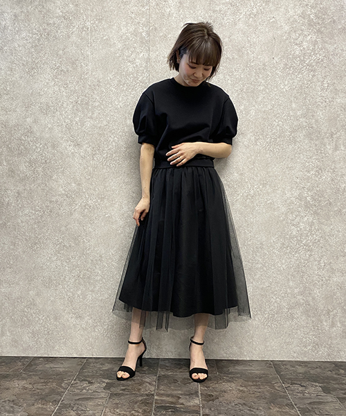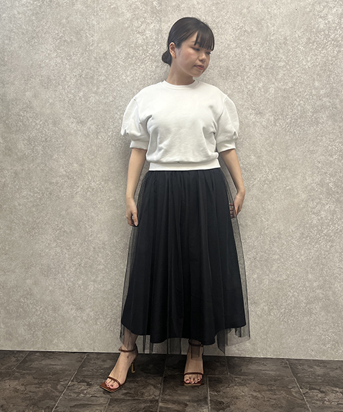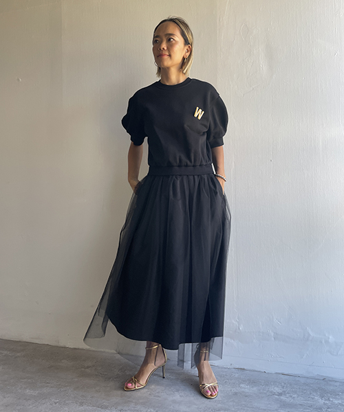 脇ポケットがあり便利。程よいAラインシルエットでとても軽量な着心地感なので疲れません。ボリュームのあるサンダルやスニーカーなど幅広いスタイリングができます。