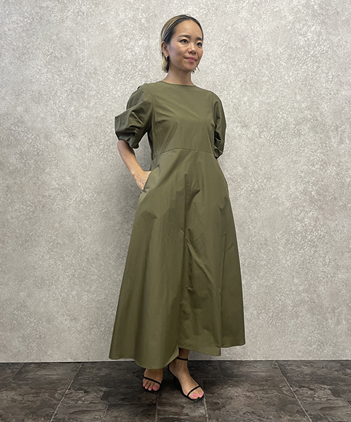 ハリ感の強すぎない柔らかな撥水素材ワンピなら、子どもの公園に付き合ったりジャブジャブ池遊びもへっちゃら。グレイッシュな色合いで高級感も◎昨年はIラインだったシルエットを、よりデイリーに着やすいフレアにしています。アクセントにもなった前ジップはメーク後も脱ぎ着しやすく便利!