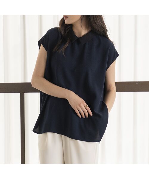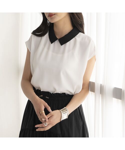 楽ちんカジュアル優先になりがちな真夏でも、機能性いっぱいな小さめの衿のブラウスなら〝夏のきちんと〟が叶います。ほどよい華奢袖も二の腕を隠してくれる嬉しいポイント。ホワイト、ネイビーともにブラックの衿を配したバイカラーデザイン。接触冷感、吸水速乾、ストレッチ、防シワと機能性たっぷりで、洗濯も可◎