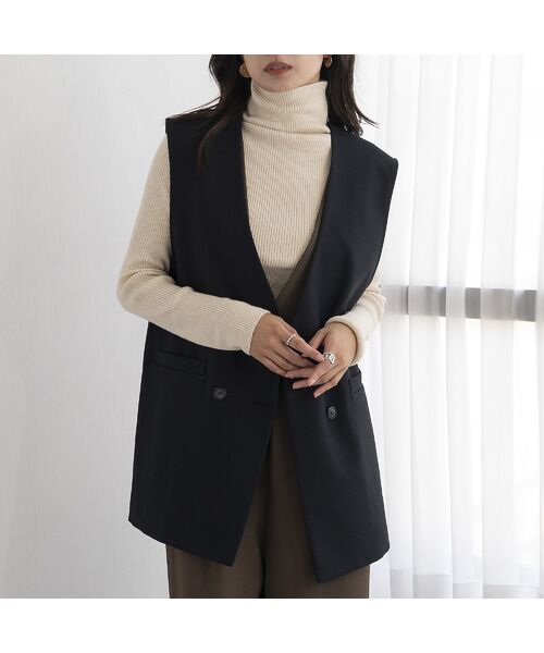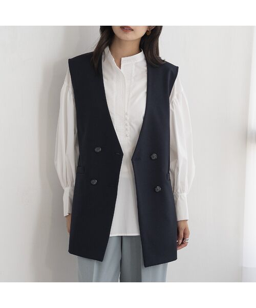 ブラウスやスラックスと合わせたフォーマルスタイルやオフィススタイル、カットソーやデニムでカジュアルなスタイリングまで幅広く着回せます。ボタンを開けてラフにカーディガン感覚で羽織るのがおすすめです。
