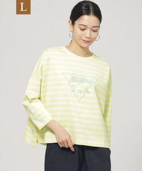 ショート丈のボクシーなシルエットが、新鮮なボーダーと無地のカットソー。一般的なバスクシャツの肉感は残しつつ、洗いざらし感よりも、もう少ししなやかで、大人の女性がヘルシーに着こなせる素材を作りました。EVEX by KRIZIAのアーカイブのモチーフを胸元に刺繍風のプリントで表現した、こだわりの詰まった一枚です。