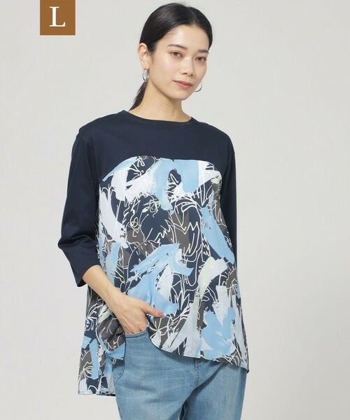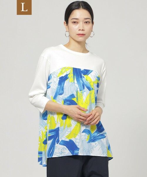 【L】【ウォシャブル】フラワープリントコンビカットソー