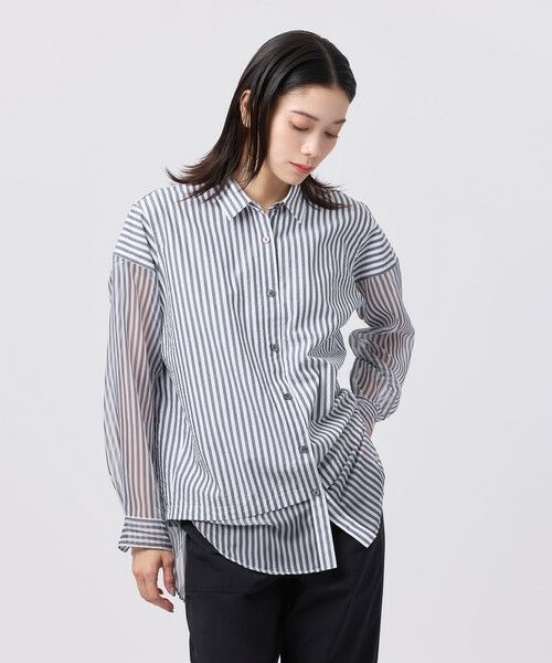【L】【カタログ掲載品】【ウォッシャブル】シアーコンビストライプロングシャツ