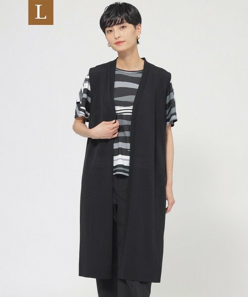 【L】【ウォッシャブル】ドライタッチコットンニットロングジレ