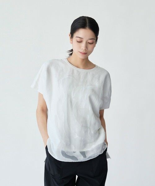 【L】【カタログ掲載品】【ウォッシャブル】オパールタイガーコンビカットソーこちらはラージサイズです。身頃続きの袖が、ナチュラルでカジュアルなシルエットを生み出し、夏に向けて1枚着で重宝するデザインTシャツ。今までのオパールシリーズとは視点を変えた、大きなタイガーフェイス柄がポイントです。【素材】タイガー柄の顔を大胆に大きくオパール加工を施した布帛素材と、綿天竺のジャージーコンビ。いつもより抜けた部分が大きい分、下のカットソーとの濃淡差で柄が浮き出てくるような、涼し気な雰囲気です。(春夏展開商材)
