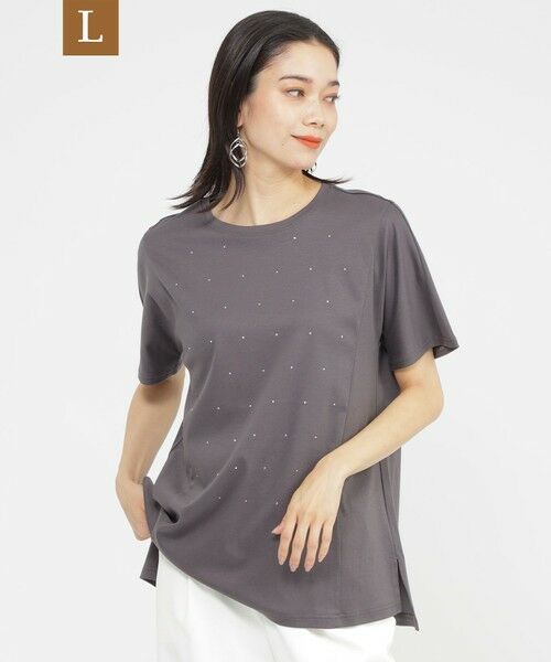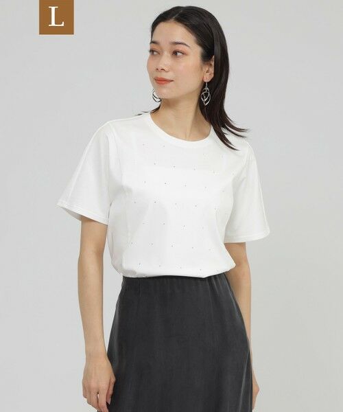 【L】【カタログ掲載品】【接触冷感】【ウォッシャブル】超冷感コットンスムースホットフィットドットカットソーこちらはラージサイズです。サラッと着られる、短めのチュニックを無地ライクに仕上げたカットソー。メタルカットのラインストーンの程よいきらめきが、涼しい印象と大人カジュアルを演出します。無地ライクなホットフィットの並びで、コーディネートしやすいアイテムです。【素材】毛羽を極限まで落とし、複数の特殊加工を施すことにより、シルクのような光沢感、滑らかな風合いをもたせた『超冷感』コットンスムース。通常のコットン100%素材では難しい、通常基準の約2倍の接触冷感機能をもたせました。洗濯後も毛羽が出にくい為、発色がきれいなのも特徴です。(春夏展開商材)