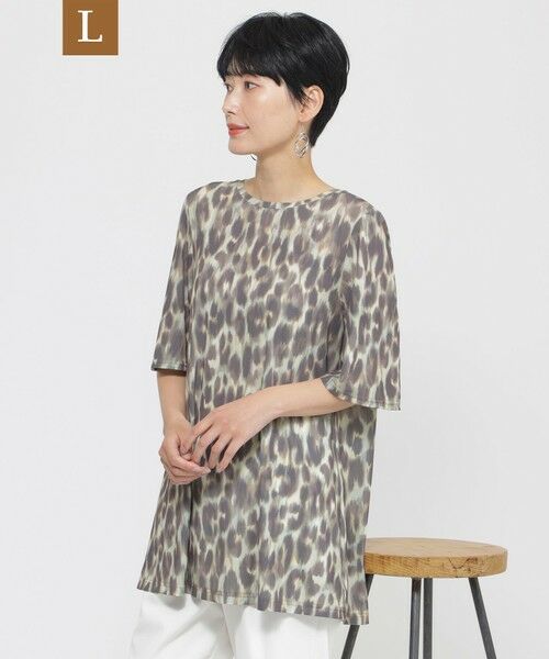 【l】【接触冷感】【ウォシャブル】クールレオパードチュニックカットソー
