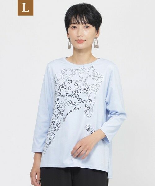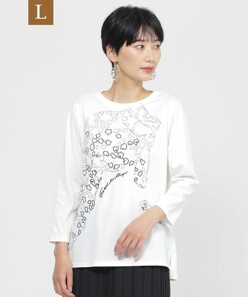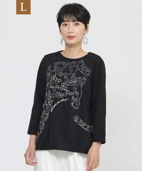 【L】【WEB・一部店舗限定】【接触冷感】【ウォシャブル】パンサーエンブロイダリー七分袖カットソーこちらはラージサイズです。クルーネックの七分袖カットソー。定番のシルエットやサイズ感で、色々なアイテムと合わせやすいデザインです。レオパード柄を手書き風タッチの刺繍でグラフィカルに表現しています。【素材】適度な肉感で、白でも透けにくい50/2天竺素材です。ガス焼きバイオ加工によるきれいな目面、柔らかな肌触り、軽やかな風合いが特徴です。接触冷感機能付きです。(春夏展開商材)