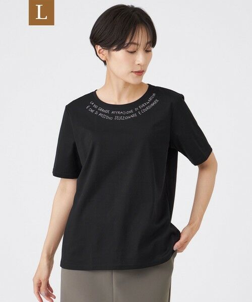 【L】【接触冷感】【ウォッシャブル】ネックエンブロイダリーカットソー