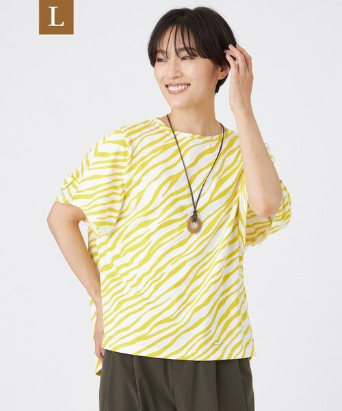 【L】【ウォッシャブル】フローゼブラグリッタープリントカットソー